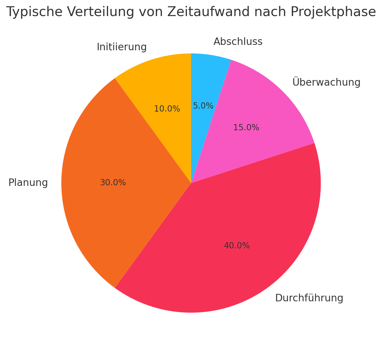 Diese Darstellung zeigt deutlich, dass die Planungs- und Umsetzungsphasen den größten Ressourceneinsatz erfordern – gleichzeitig entstehen hier aber auch die meisten Fehlerquellen.